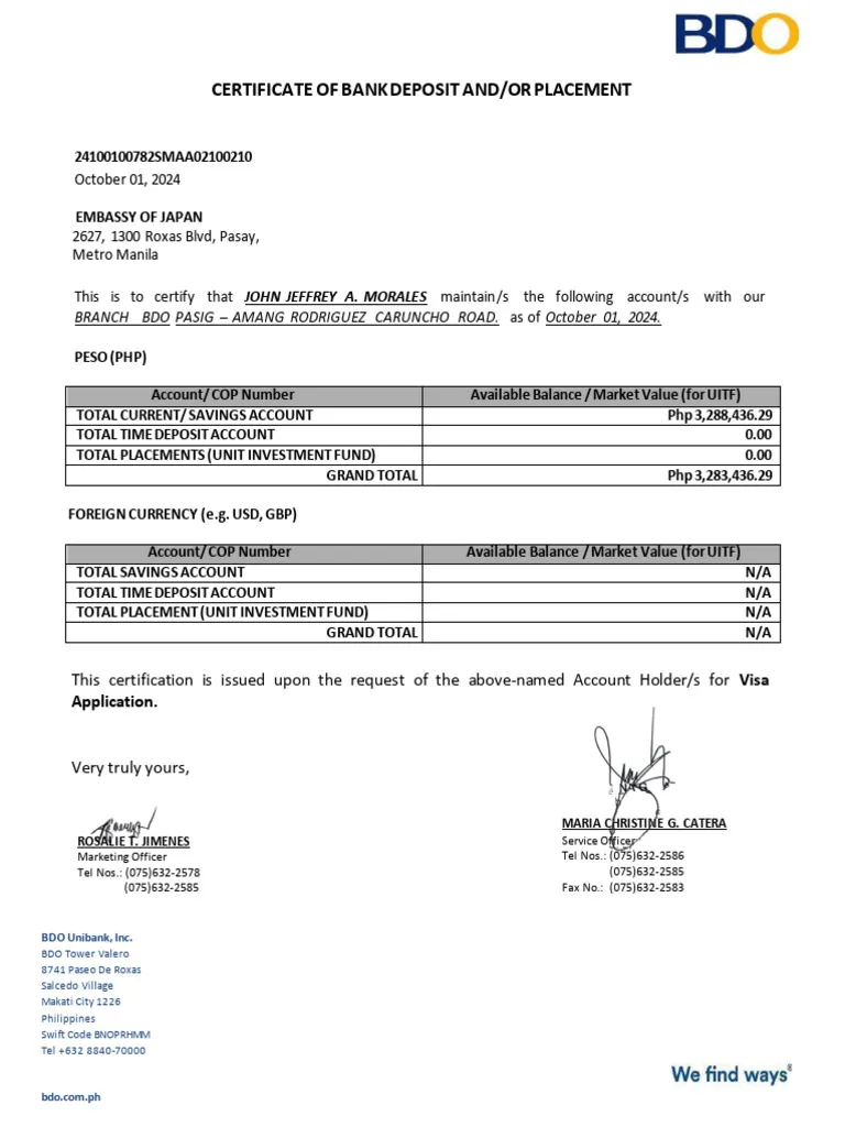 A bank certificate should also be prepared as supporting financial proof for the visa application. It is best that the bank certificate is addressed to the Chinese Embassy. Take note that a bank certificate is usually considered valid for only one month from the date of issuance, so it should be requested close to your planned visa application date. This helps show financial capacity to support the business trip, including meetings, sourcing activities, accommodations, and related travel expenses.